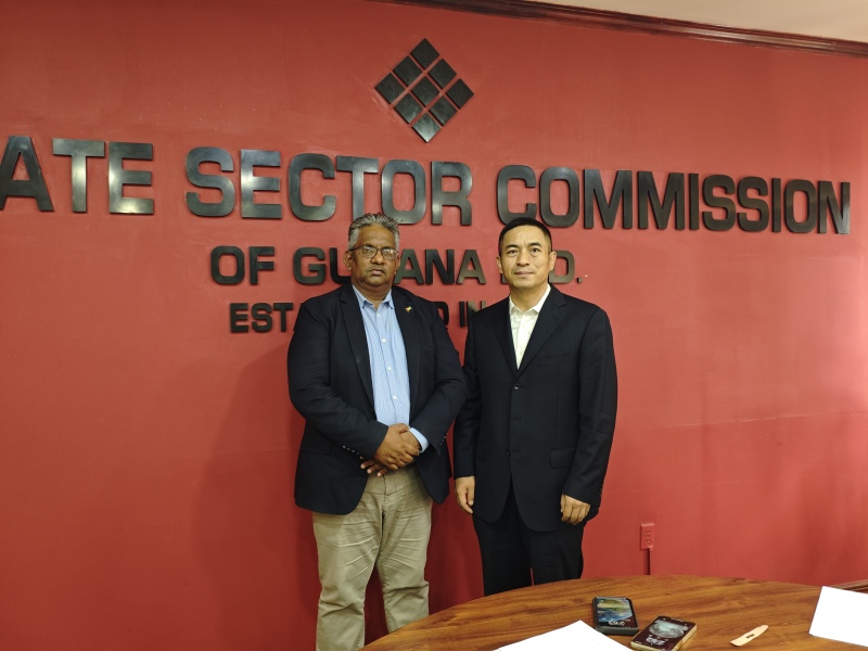 4月14日,李汉清参赞会见圭亚那私营业委员会主席辛格,双方就人力资源和投资贸易合作等相关问题进行了交流。